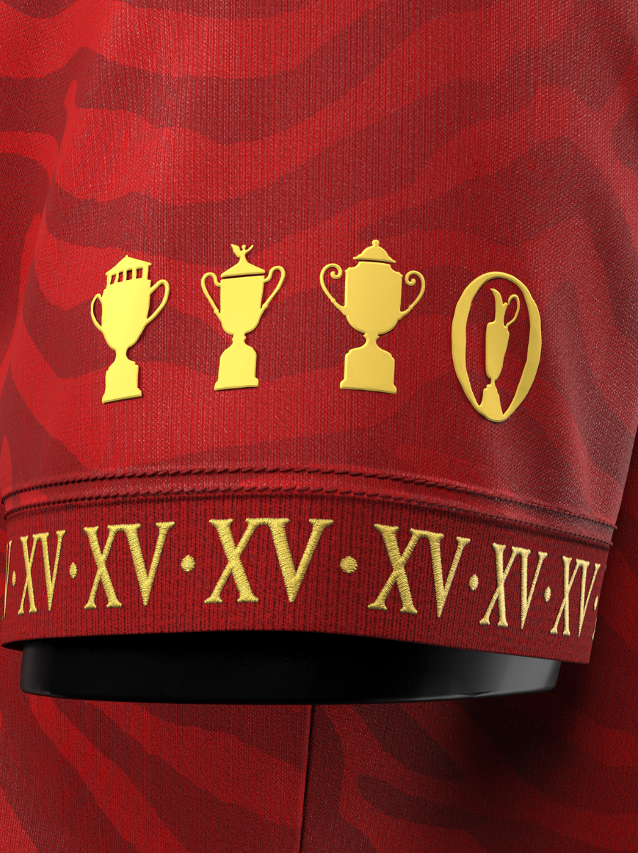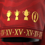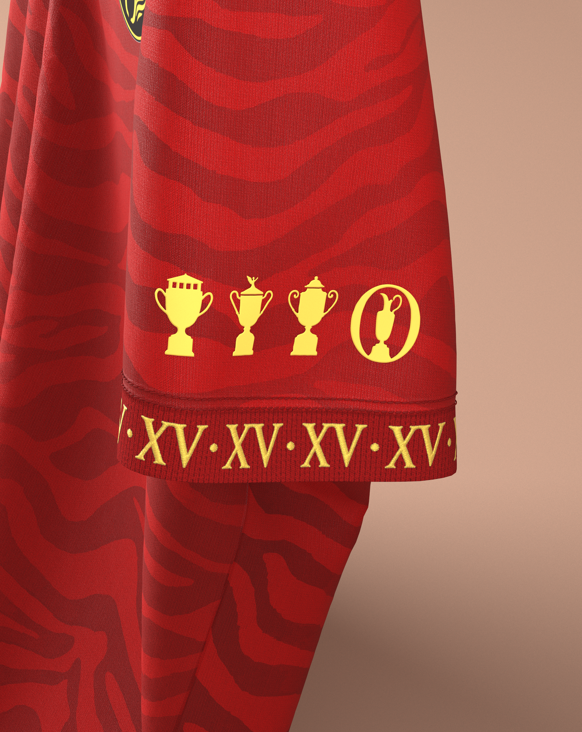 Displayed in gold along the sleeve, every major trophy from Augusta to St Andrews. A legacy of dominance, marked not by teams, but by triumphs. The embroidered XV pattern represents Tigers 15 majors won.